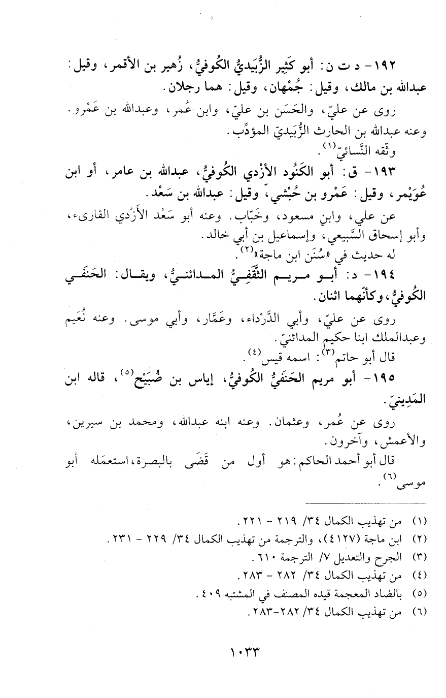 192 - د ت ن: أَبُو كَثِيرٍ الزُّبَيْدِيُّ الْكُوفِيُّ زُهَيْرُ بْنُ الأَقْمَرِ، وَقِيلَ: عَبْدُ اللَّهِ بْنُ مَالِكٍ، وَقِيلَ: جُمْهَانُ، [الوفاة: 81 - 90 ه]