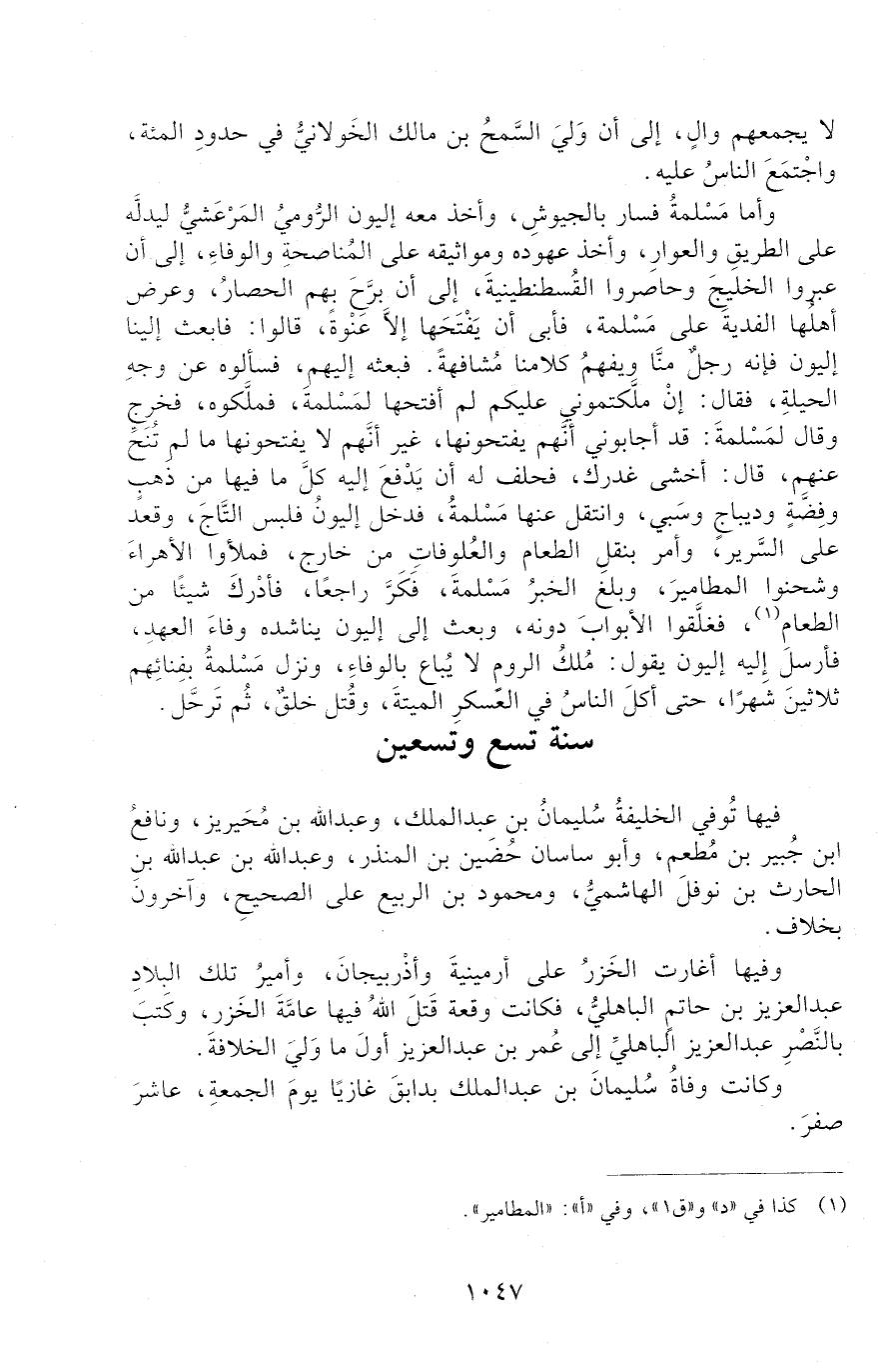 وَكَانَتْ وَفَاةُ سُلَيْمَانَ بْنِ عَبْدِ الْمَلِكِ بِدَابِقَ غَازِيًا يَوْمَ الْجُمُعَةِ، عَاشِرَ صَفَرٍ. -[1048]-