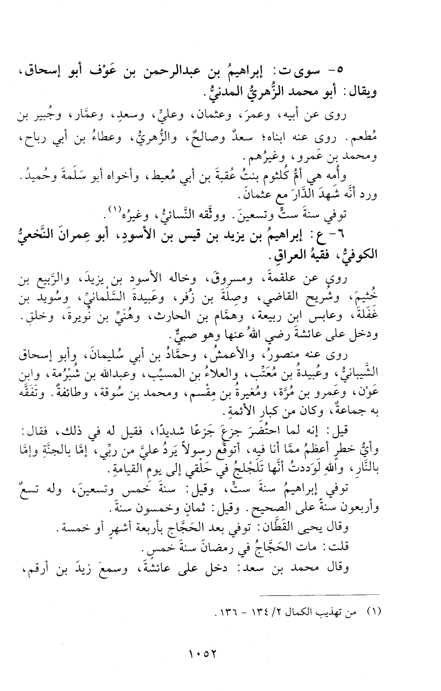 6 - ع: إِبْرَاهِيمُ بْنُ يَزِيدَ بْنِ قَيْسِ بْنِ الأَسْوَدِ، أَبُو عِمْرَانَ النَّخَعِيُّ الْكُوفِيُّ، [الوفاة: 91 - 100 ه]