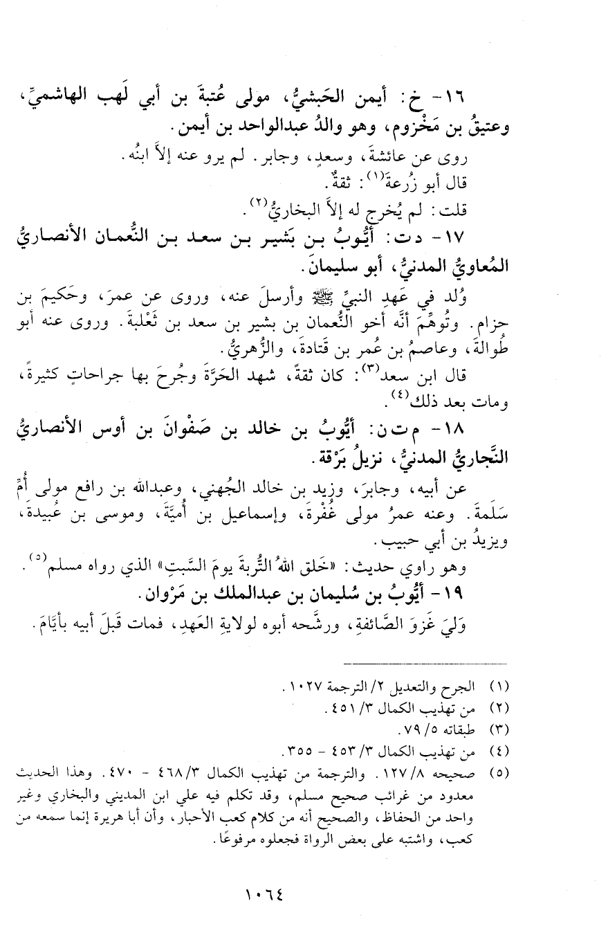 17 - د ت: أيوب بن بشير بْنِ سَعْدِ بْنِ النُّعْمَانِ الأَنْصَارِيُّ الْمُعَاوِيُّ الْمَدَنِيُّ أَبُو سُلَيْمَانَ. [الوفاة: 91 - 100 ه]