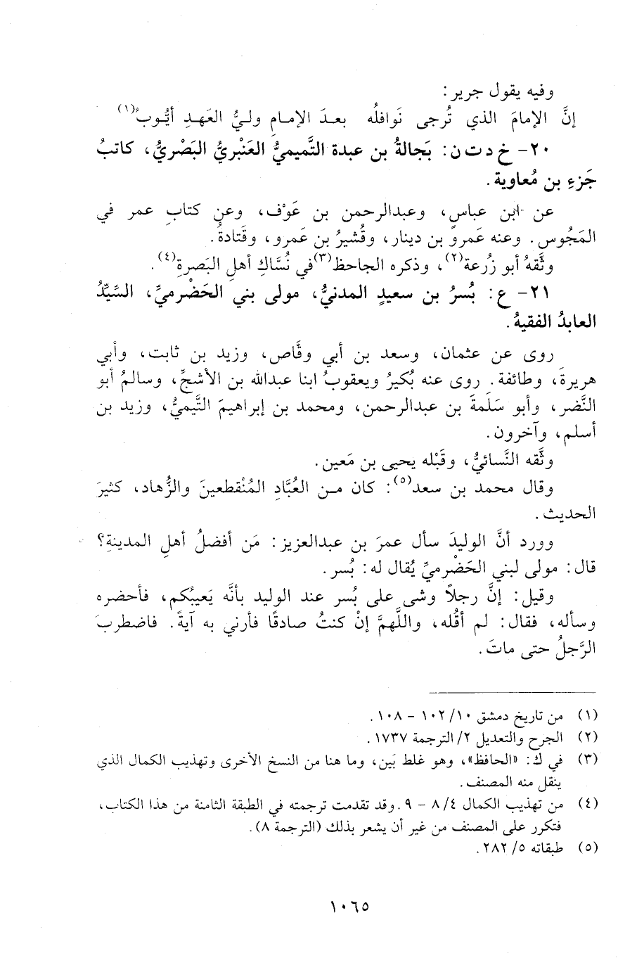 20 - خ د ت ن: بَجَالَةُ بْنُ عَبَدَةَ التَّميْمِيُّ الْعَنْبَرِيُّ الْبَصْرِيُّ، [الوفاة: 91 - 100 ه]