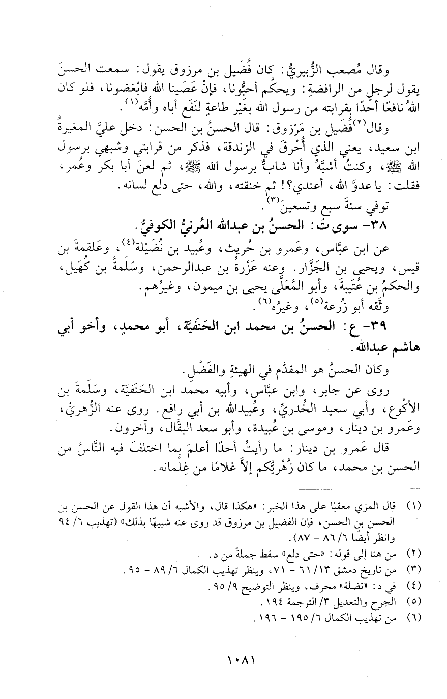 39 - ع: الحسن بن محمد ابن الْحَنَفِيَّةِ أَبُو مُحَمَّدٍ، [الوفاة: 91 - 100 ه]