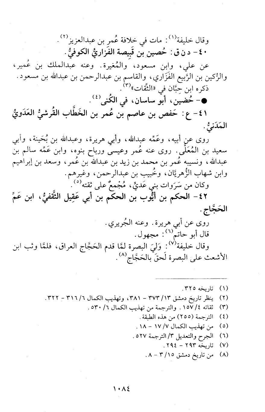 40 - د ن ق: حُصَيْنُ بْنُ قَبِيصَةَ الْفَزَارِيُّ الْكُوفِيُّ. [الوفاة: 91 - 100 ه]
