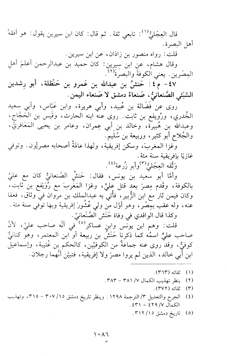 47 - م 4: حَنَشُ بْنُ عَبْدِ الله بن عمرو بن حنظلة، أبو رِشدين السبئي الصَّنْعَانِيُّ، [الوفاة: 91 - 100 ه]