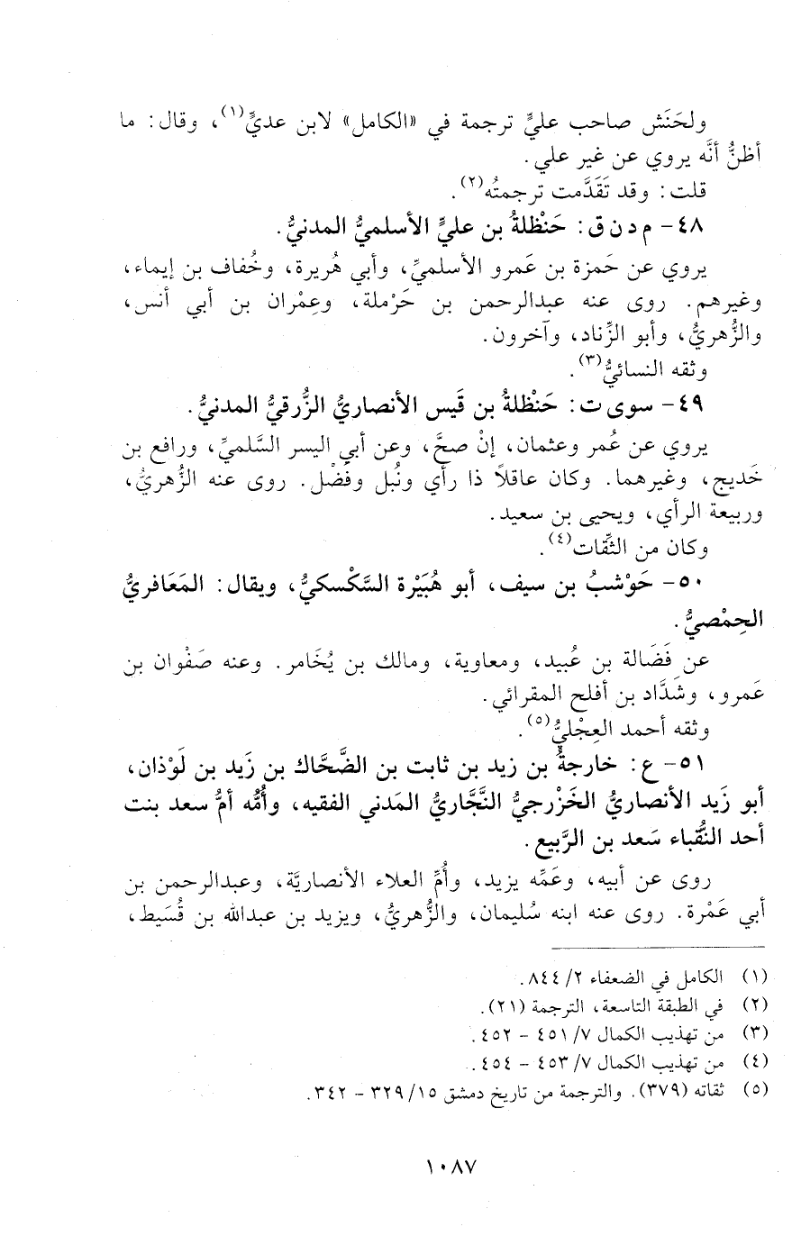 49 - سوى ت: حَنْظَلَةُ بْنُ قَيْسٍ الأَنْصَارِيُّ الزُّرَقِيُّ الْمَدَنِيُّ. [الوفاة: 91 - 100 ه]