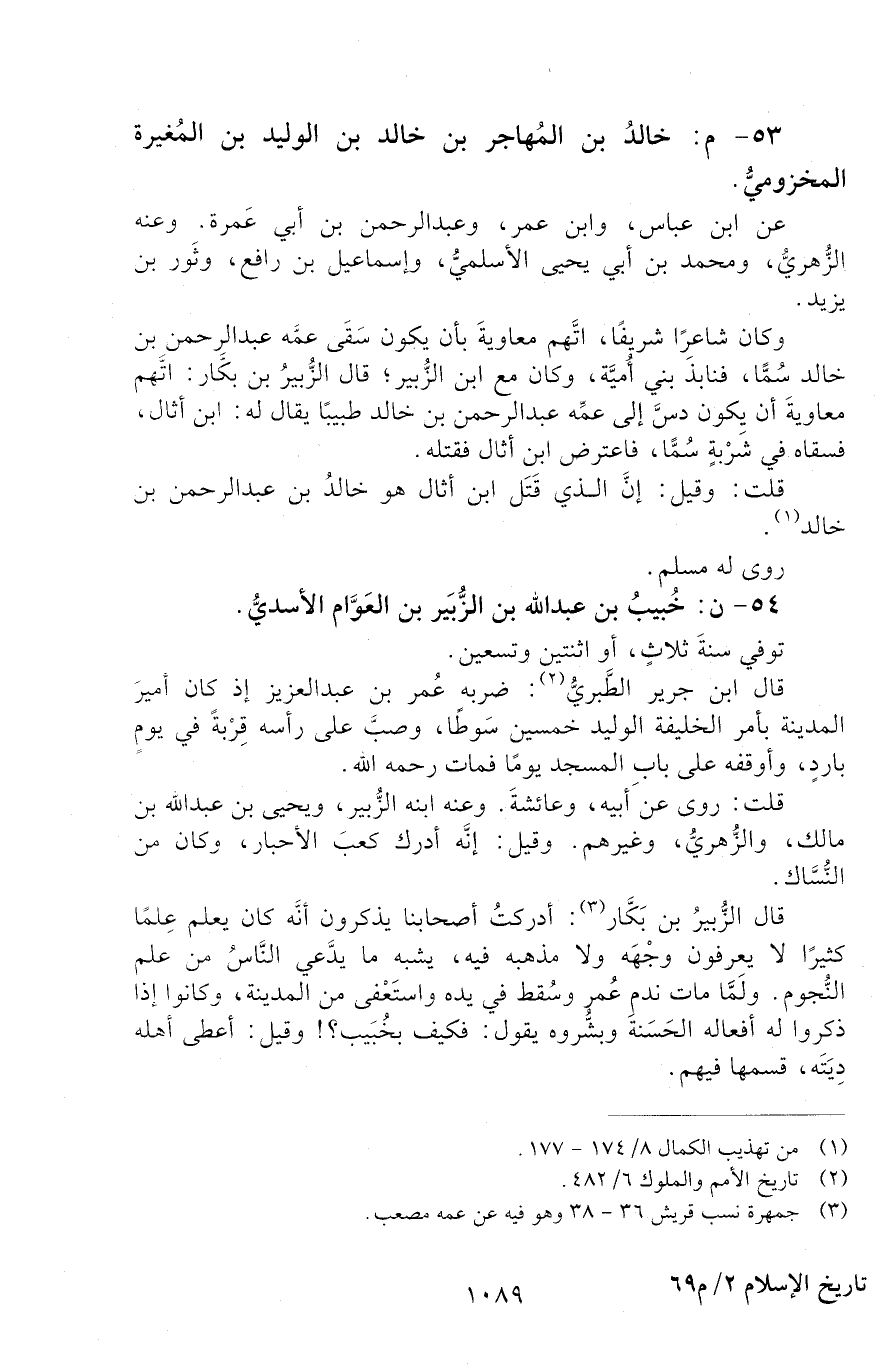 53 - م: خَالِدُ بْنُ الْمُهَاجِرِ بْنُ خَالِدِ بْنِ الْوَلِيدِ بْنِ الْمُغِيرَةَ الْمَخْزُومِيُّ. [الوفاة: 91 - 100 ه]
