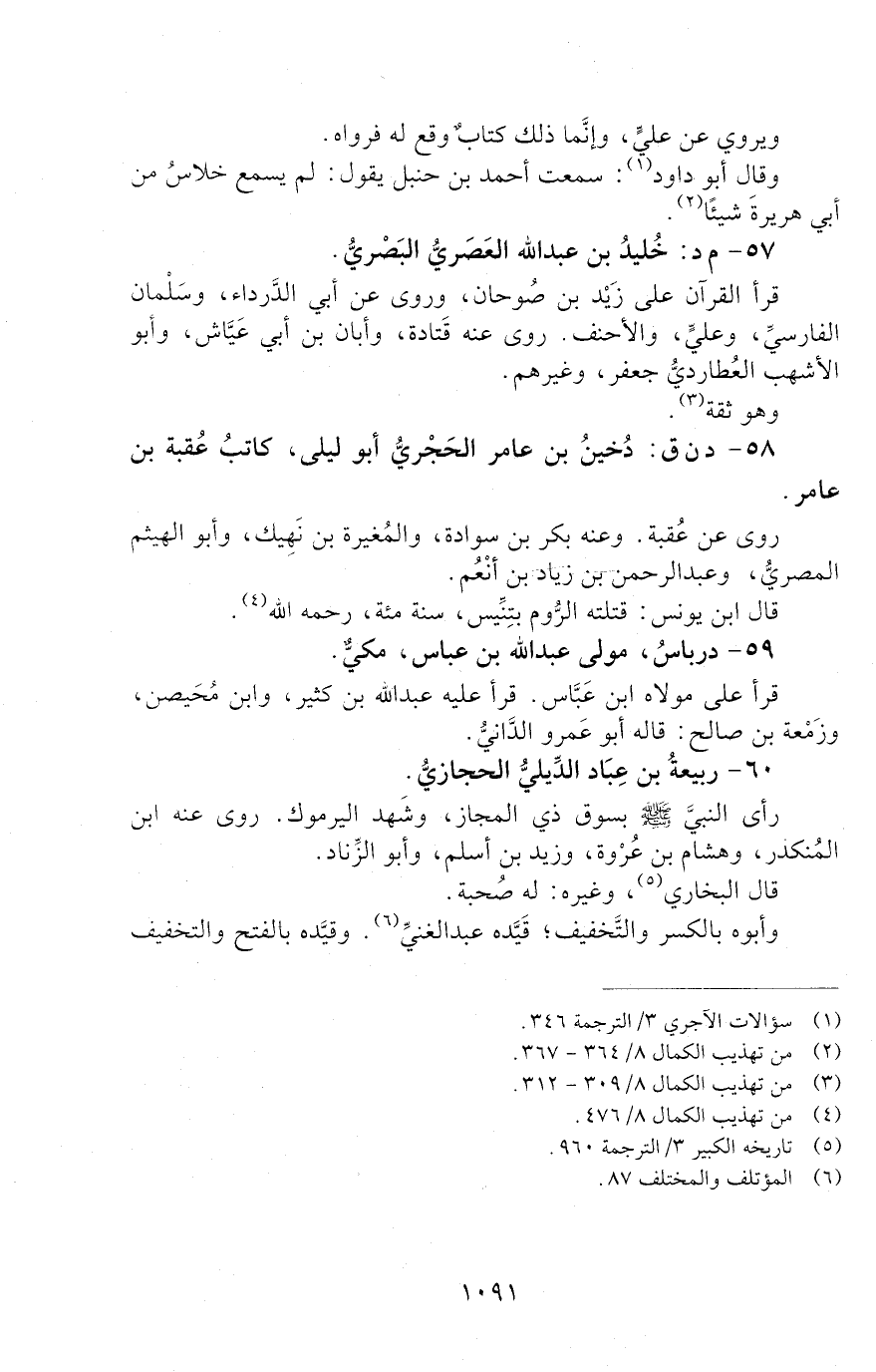 57 - م د: خُلَيْدُ بْنُ عَبْدِ اللَّهِ الْعَصَرِيُّ الْبَصْرِيُّ. [الوفاة: 91 - 100 ه]