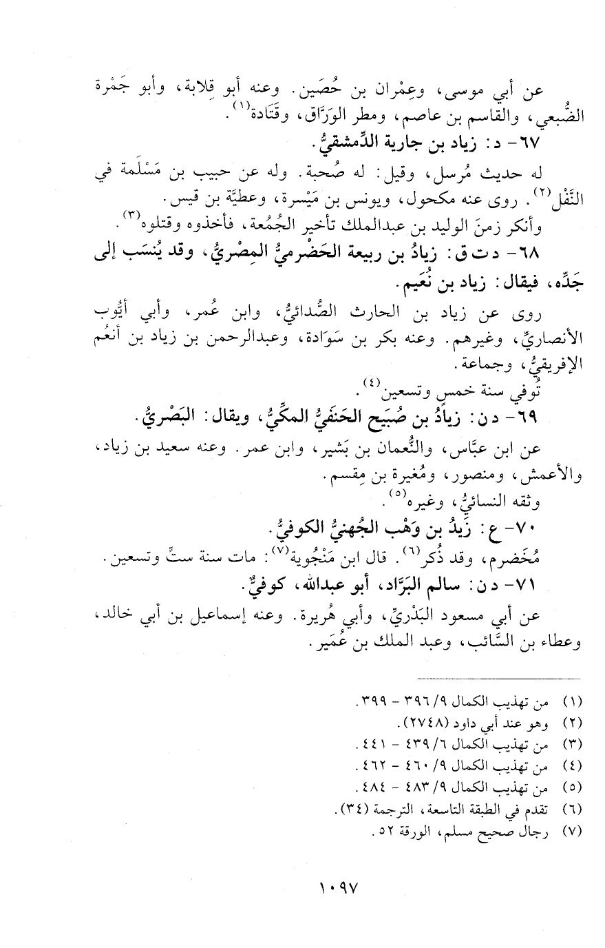 67 - د: زِيَادُ بْنُ جَارِيَةَ الدِّمَشْقِيُّ. [الوفاة: 91 - 100 ه]
