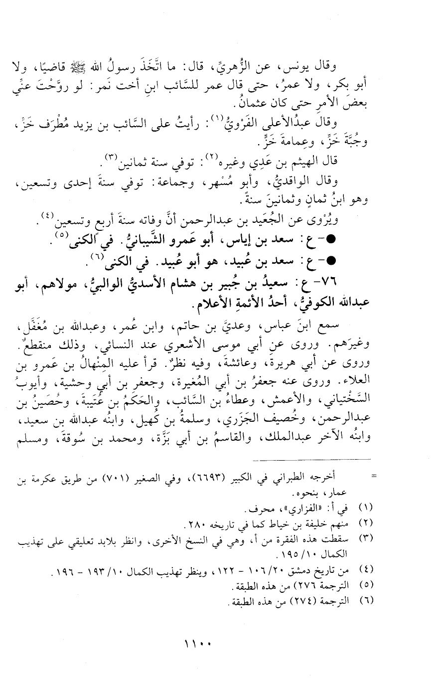 76 - ع: سَعِيدُ بن جبير بن هِشَامٍ الأَسَدِيُّ الْوَالِبِيُّ مَوْلاهُمْ، أَبُو عَبْدِ اللَّهِ الْكُوفِيُّ، [الوفاة: 91 - 100 ه]