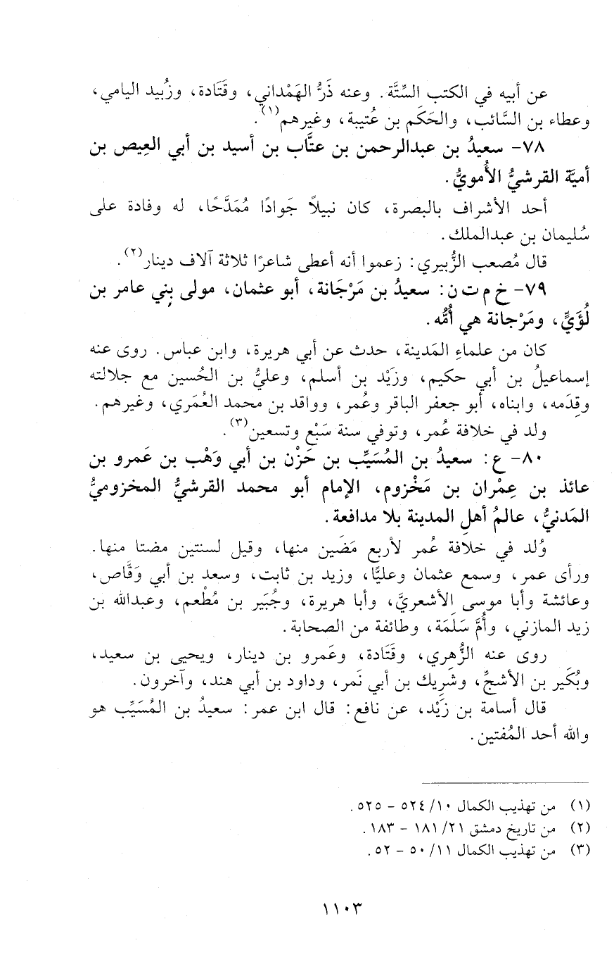 78 - سَعِيدُ بْنُ عَبْدِ الرَّحْمَنِ بْنِ عَتَّابِ بْنِ أُسيد بْنِ أَبِي الْعِيصِ بْنِ أُمَيَّةَ الْقُرَشِيُّ الأُمَوِيُّ. [الوفاة: 91 - 100 ه]