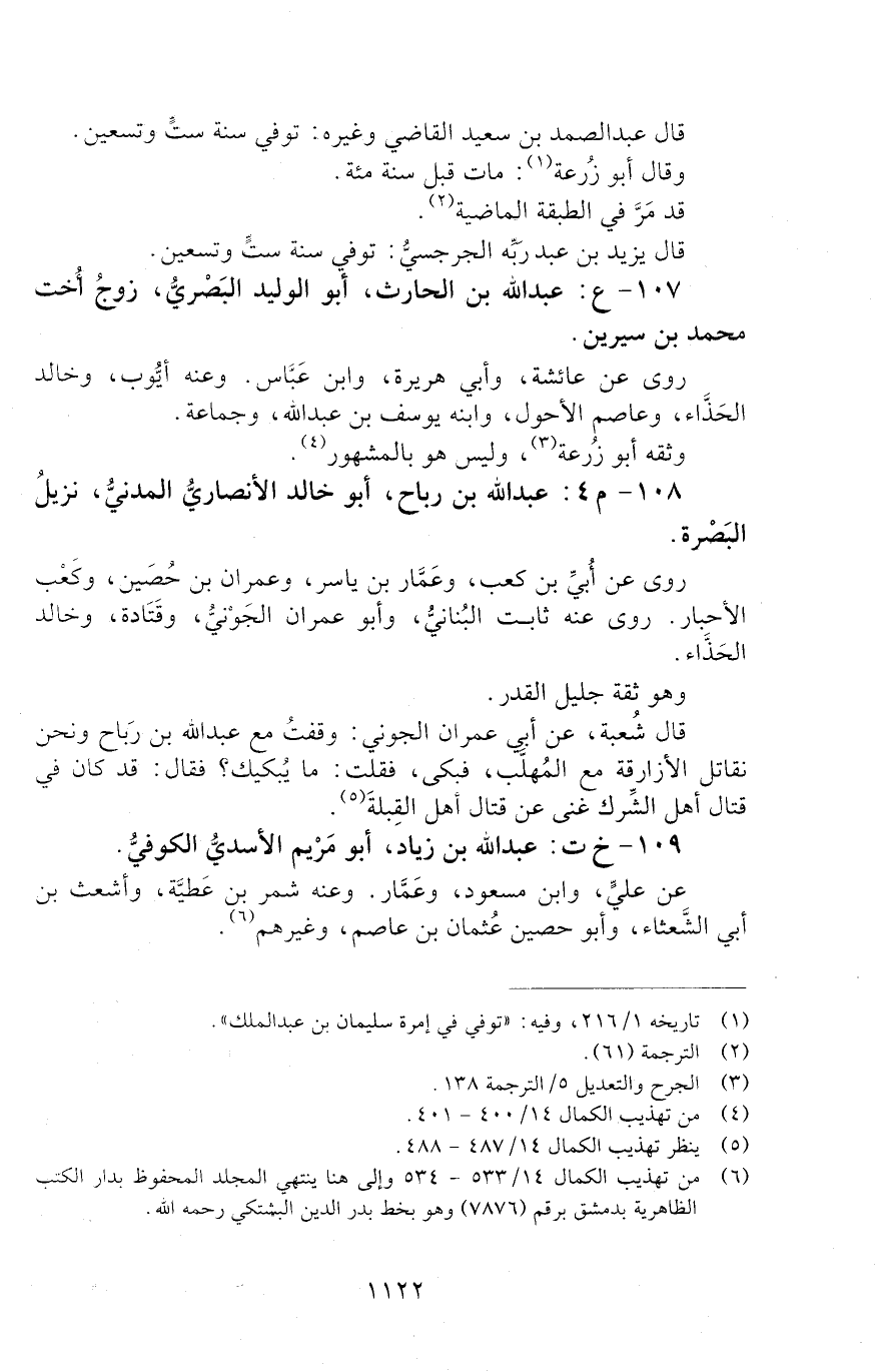 107 - ع: عَبْدُ اللَّهِ بْنُ الْحَارِثِ، أَبُو الْوَلِيدِ الْبَصْرِيُّ، [الوفاة: 91 - 100 ه]
