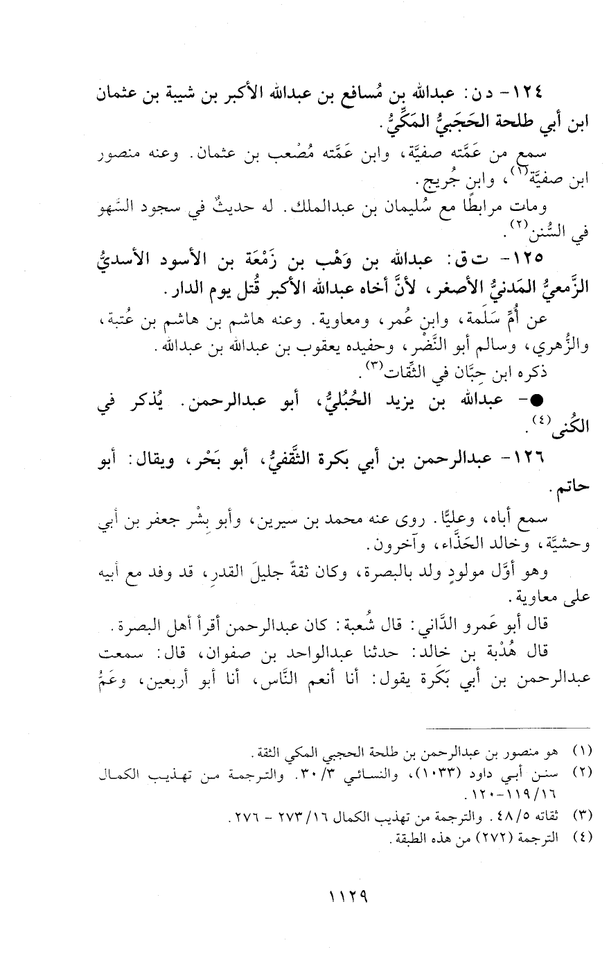 126 - عَبْدُ الرَّحْمَنِ بْنُ أَبِي بَكْرَةَ الثَّقَفِيُّ، أَبُو بَحْرٍ، وَيُقَالُ: أَبُو حَاتِمٍ. [الوفاة: 91 - 100 ه]