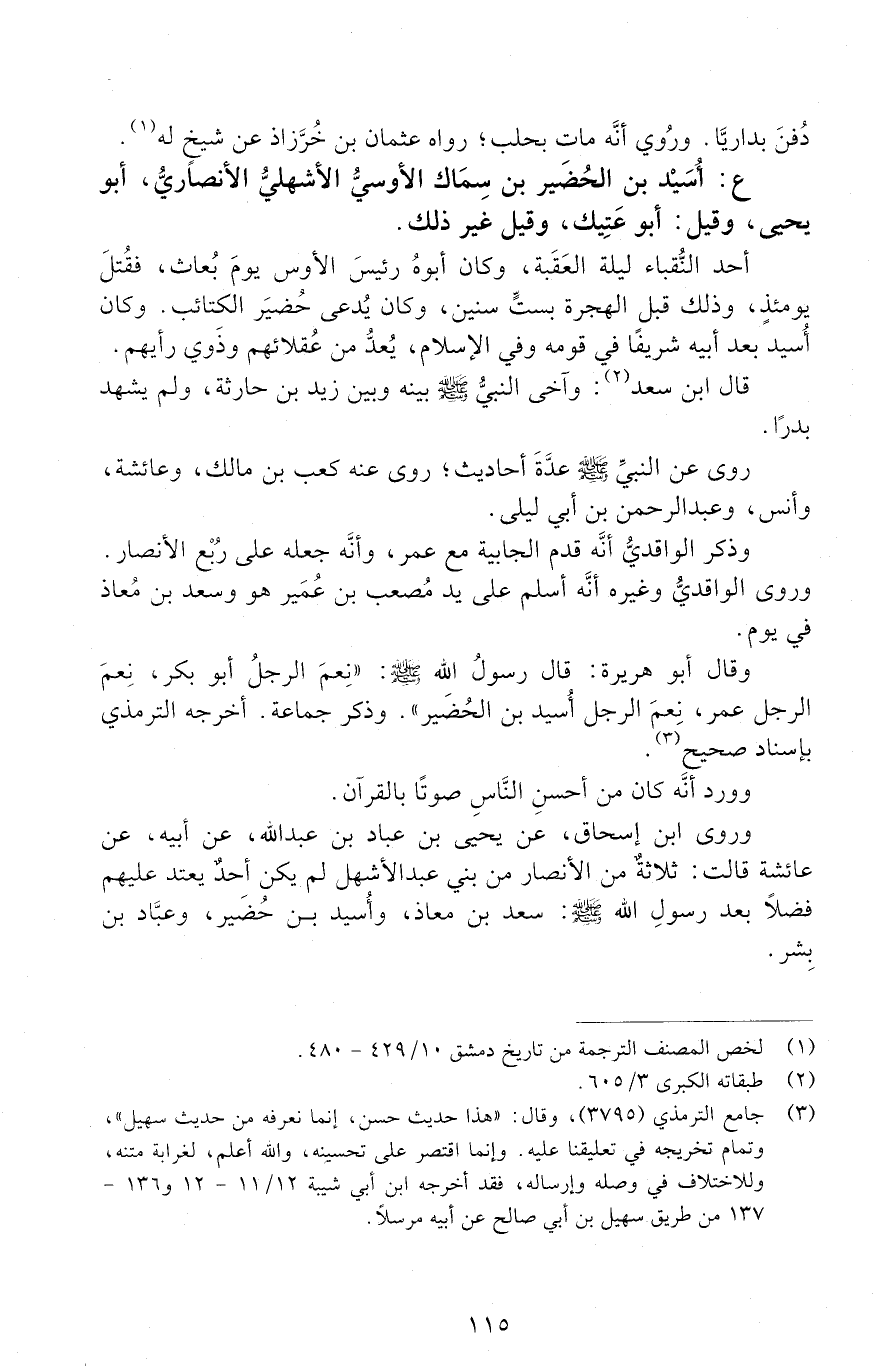 -ع: أسيد بن الحضير بن سماك الأوسي الأشهلي الأنصاري، أَبُو يحيى، وقيل: أَبُو عَتِيك، [المتوفى: 20 ه]