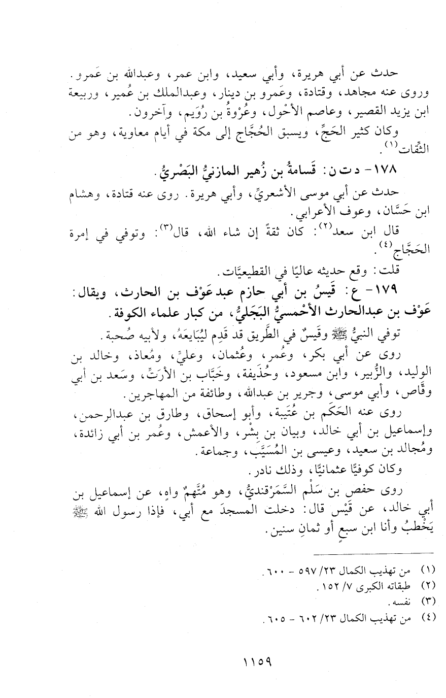 179 - ع: قَيْسُ بْنُ أَبِي حَازِمٍ عَبْدُ عَوْفِ بْنِ الْحَارِثِ، وَيُقَالُ: عَوْفُ بْنُ عَبْدِ الْحَارِثِ الأَحْمَسِيُّ الْبَجَلِيُّ، [الوفاة: 91 - 100 ه]