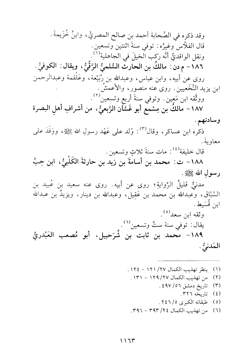 188 - ت: مُحَمَّدُ بْنُ أُسَامَةَ بْنِ زَيْدِ بْنِ حَارِثَةَ الْكَلْبِيُّ، ابْنُ حِبُّ رَسُولِ اللَّهِ - صَلَّى اللَّهُ عَلَيْهِ وَسَلَّمَ -[الوفاة: 91 - 100 ه]