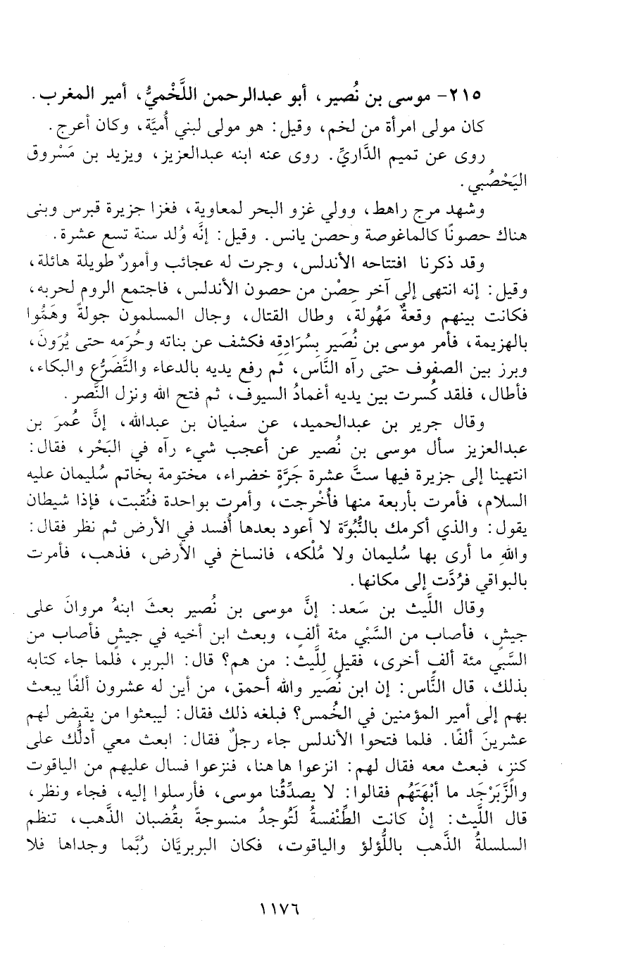 215 - مُوسَى بْنُ نُصَيْرٍ، أَبُو عَبْدِ الرَّحْمَنِ اللَّخْمِيُّ، [الوفاة: 91 - 100 ه]