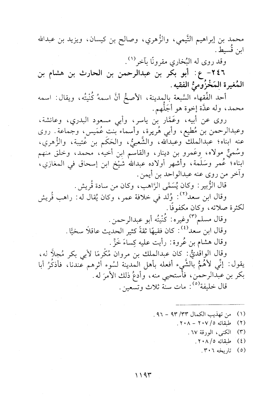 246 - ع: أبو بَكْرِ بْنُ عَبْدِ الرَّحْمَنِ بْنِ الْحَارِثِ بْنِ هشام بن المغيرة المخزومي الفقيه [الوفاة: 91 - 100 ه]