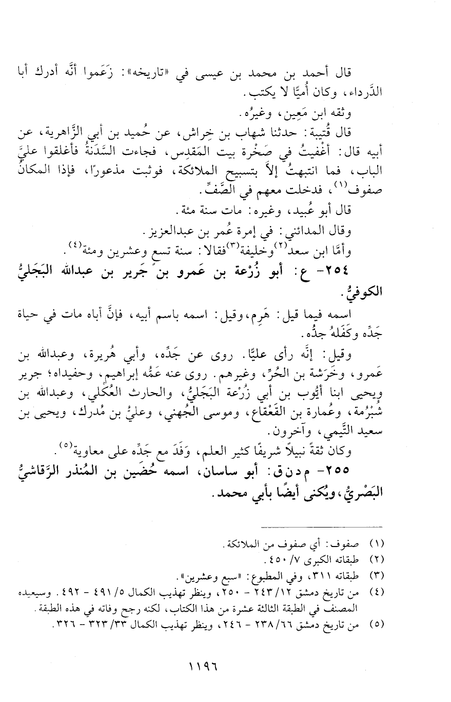 254 - ع: أَبُو زُرْعَةَ بْنُ عَمْرِو بْن جَرِيرِ بْنِ عَبْدِ اللَّهِ الْبَجَلِيُّ الْكُوفِيُّ اسْمُهُ فِيمَا قِيلَ: هَرِمٌ، [الوفاة: 91 - 100 ه]