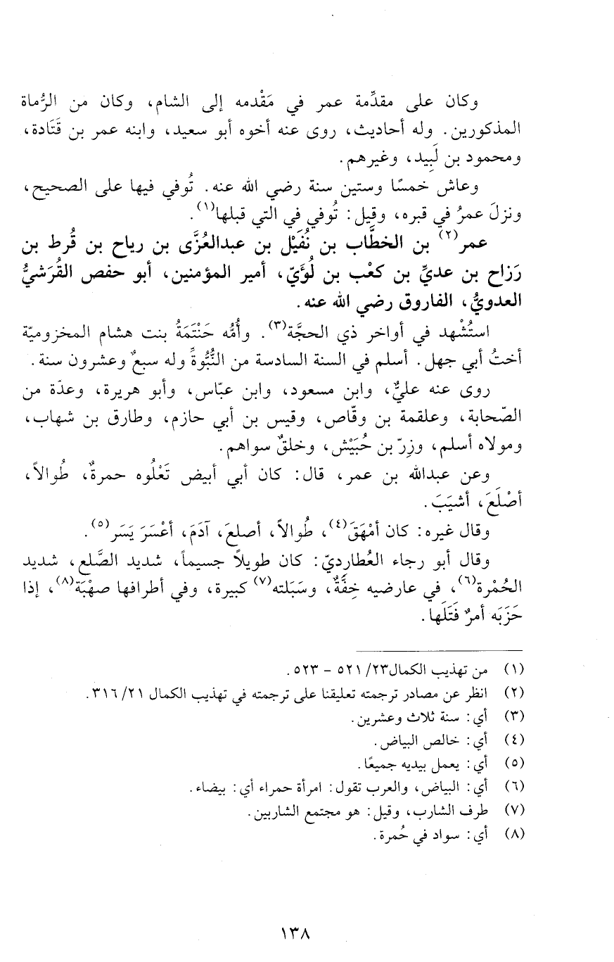 -عمر بْنِ الْخَطَّابِ بْنِ نُفَيْلِ بْن عَبْدِ العُزَّى بْن رياح بْن قُرط بْن رزَاح بْن عديّ بْن كعْب بْن لُؤيّ، أمير المؤمنين، أَبُو حفص، القُرَشي العدوي، الفاروق رضي الله عنه. [المتوفى: 23 ه]