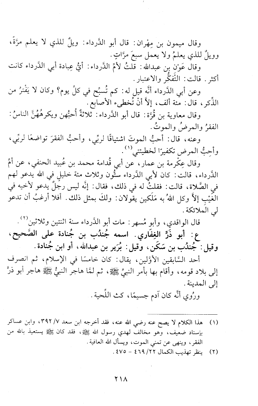 -ع: أَبُو ذَرّ الغِفَاريّ، اسمه جُنْدُب بْن جُنَادَةَ على الصَّحيح، وقيل: جُنْدُب بْن سَكَن، وقيل: بُرَيْرُ بْن عبد الله، أو ابن جُنَادة. [المتوفى: 32 ه]