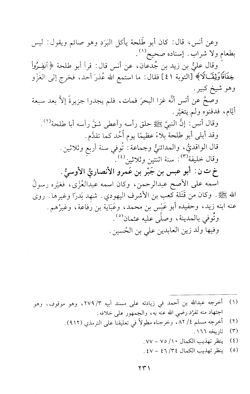 وتُوُفيّ بالمدينة، وصلّى عليه عثمان.