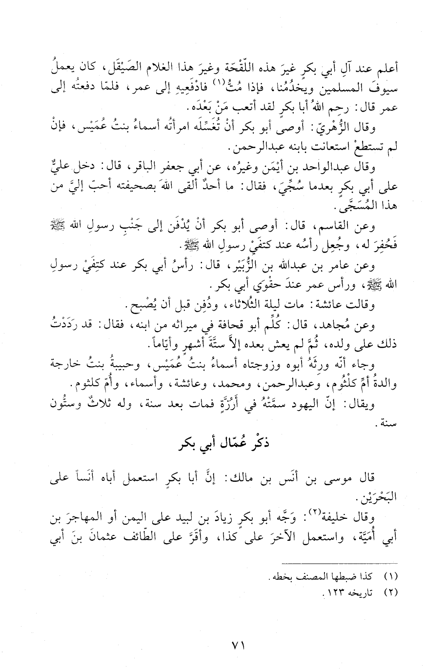 وَقَالَ خليفة: وجّه أَبُو بكر زياد بْن لبيد على اليمن أو المهاجر بْن أبي أمية، واستعمل الآخر على كذا، وأقر على الطائف عثمان بْن أبي -[72]- العاص. ولما حج استخلف على المدينة قتادة بْن النُّعْمَان. وكان كاتبه عثمان بْن عفان، وحاجبه سُديد مولاه، ويقال: كتب له زيد بْن ثابت، وكان وزيره عُمَر بْن الخطاب، وكان أيضًا على قضائه. وكان مؤذنه سعد القرظ مولى عمار بْن ياسر.