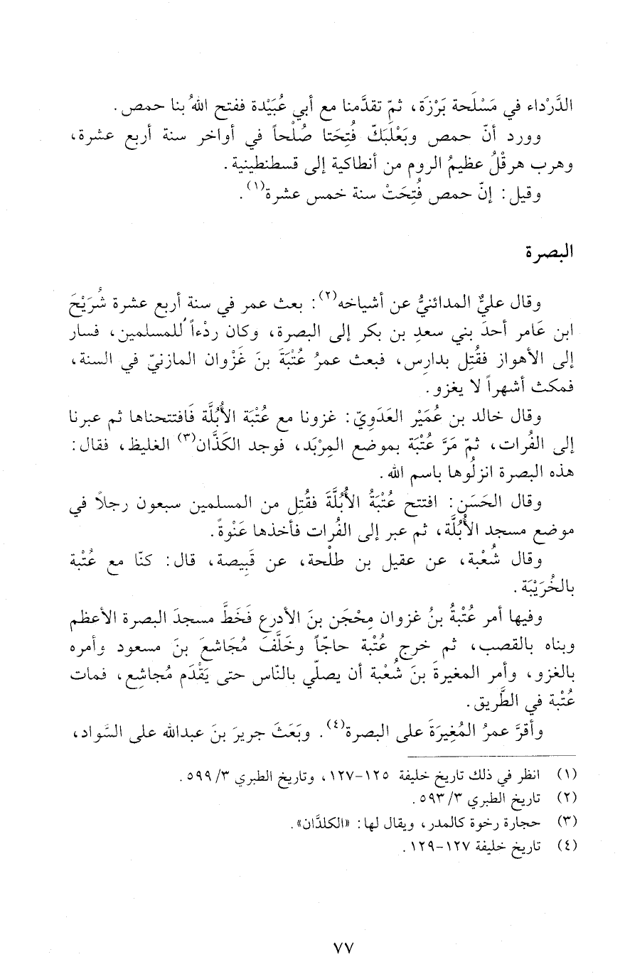 وَقَالَ الحسن: افتتح عُتْبَةُ الأُبُلَّةَ فقُتِل من المُسْلِمين سبعون رجلًا في موضع مسجد الأُبُلَّة، ثُمَّ عبر إلى الفرات فأخذها عَنْوةً.