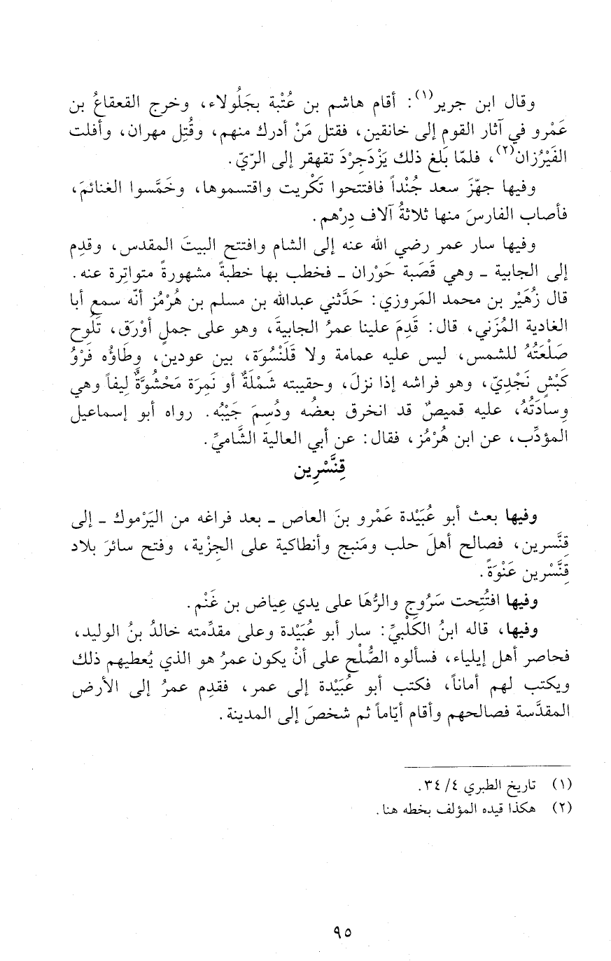 وفيها، قَالَ ابن الكلبي: سار أَبُو عبيدة وعلى مقدَّمته خالد بْن الوليد، فحاصر أهل إيلياء، فسألوه الصُّلْح على أن يكون عُمَر هو الَّذِي يعطيهم ذلك ويكتب لهم أمانًا، فكتب أَبُو عبيدة إلى عُمَر، فقدِم عُمَر إلى الأرض المقدسة فصالحهم، وأقام أيّامًا ثُمَّ شخص إلى المدينة. -[96]-