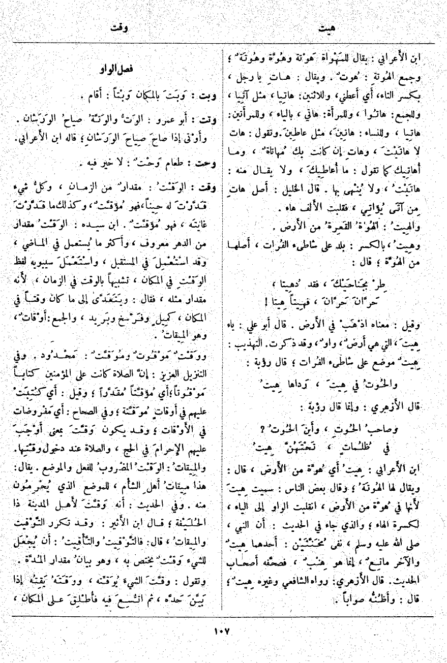 وقت: الوَقْتُ: مقدارٌ مِنَ الزمانِ، وكلُّ شَيْءٍ قَدَّرْتَ لَهُ حِيناً، فَهُوَ مُؤَقَّتٌ، وَكَذَلِكَ مَا قَدَّرْتَ غايتَه، فَهُوَ مُؤَقَّتٌ. ابْنُ سِيدَهْ: الوَقْتُ مِقْدَارٌ مِنَ الدَّهْرِ مَعْرُوفٌ، وأَكثر مَا يُستعمل فِي الْمَاضِي، وَقَدِ اسْتُعْمِلَ فِي الْمُسْتَقْبَلِ، واسْتَعْمَلَ سِيبَوَيْهِ لَفَظَ الوَقْتِ فِي الْمَكَانِ، تَشْبِيهًا بِالْوَقْتِ فِي الزَّمَانِ، لأَنه مِقْدَارٌ مِثْلُهُ، فَقَالَ: ويَتَعَدَّى إِلى مَا كَانَ وَقْتًا فِي الْمَكَانِ، كمِيلٍ وفَرْسخ وبَرِيد، وَالْجَمْعُ: أَوْقاتٌ، وَهُوَ المِيقاتُ. ووَقْتٌ مَوْقُوتٌ ومُوَقَّتٌ: مَحْدُود. وَفِي التَّنْزِيلِ الْعَزِيزِ: إِنَّ الصَّلاةَ كانَتْ عَلَى الْمُؤْمِنِينَ كِتاباً مَوْقُوتاً