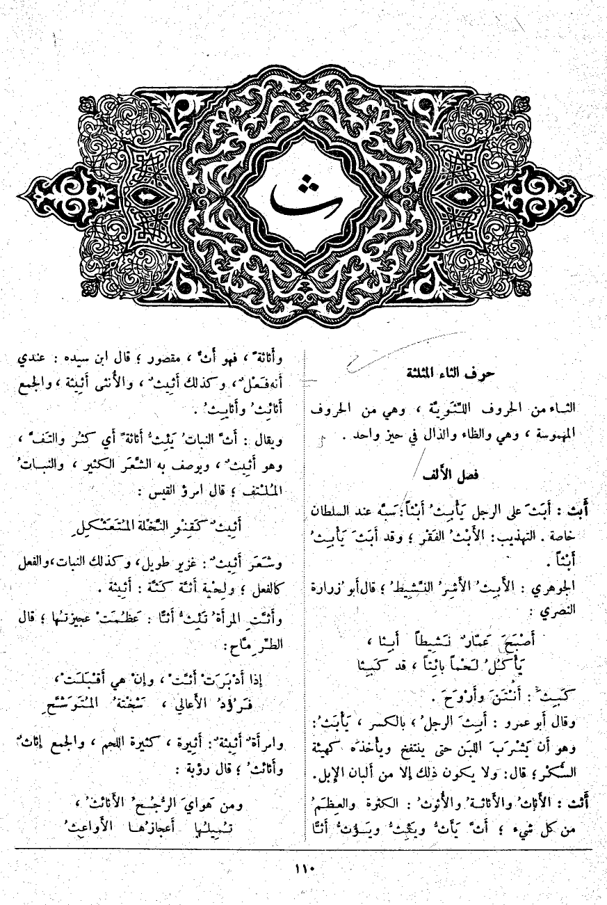 أثث: الأَثاثُ والأَثاثةُ والأُثوثُ: الْكَثْرَةُ والعِظَمُ مِنْ كُلِّ شَيْءٍ؛ أَثَّ يَأَثُّ ويَئِثُّ ويَؤُثُّ أَثًّا وأَثاثةً، فَهُوَ أَثٌّ، مَقْصُورٌ؛ قَالَ ابْنُ سِيدَهْ: عِنْدِي أَنه فَعْلٌ، وَكَذَلِكَ أَثِيثٌ، والأُنثى أَثِيثة، وَالْجَمْعُ أَثائِثُ وأَثايِثُ. وَيُقَالُ: أَثَّ النباتُ يَئِثُّ أَثاثةً أَي كثُر والتَفَّ، وَهُوَ أَثِيثٌ، وَيُوصَفُ بِهِ الشَّعَر الكثير، والنباتُ المُلْتف؛ قال امْرُؤُ الْقَيْسِ: