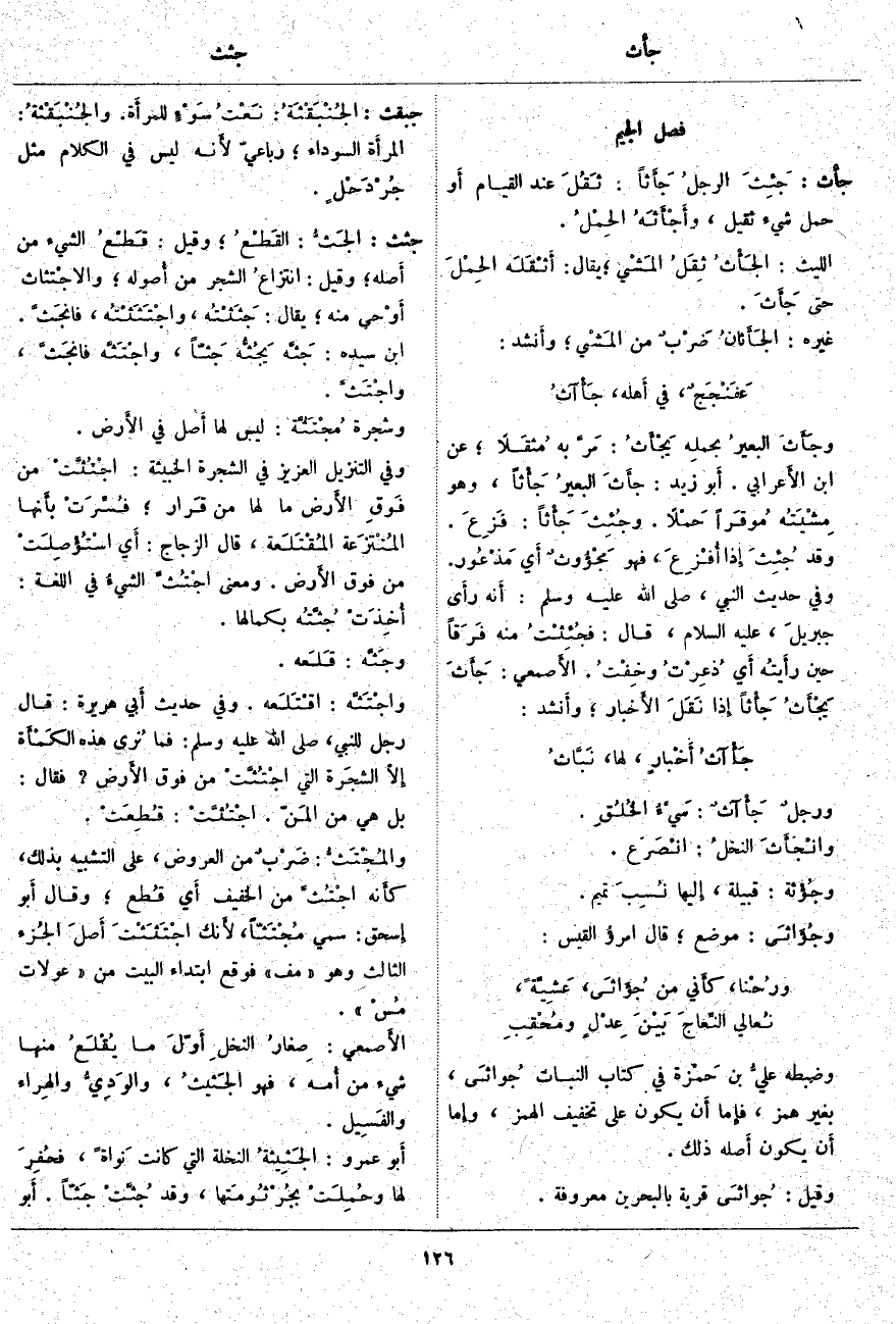 جثث: الجَثُّ: القَطْعُ؛ وَقِيلَ: قَطْعُ الشَّيْءِ مِنْ أَصله؛ وَقِيلَ: انتزاعُ الشَّجَرِ مِنْ أُصوله؛ والاجْتثاث أَوْحى مِنْهُ؛ يُقَالُ: جَثَثْتُه، واجْتَثَثْتُه، فانجَثَّ. ابْنُ سِيدَهْ: جَثَّه يَجُثُّه جَثّاً، واجْتَثَّه فانجَثَّ، واجْتَثَّ. وَشَجَرَةٌ مُجْتَثَّة: لَيْسَ لَهَا أَصل فِي الأَرض. وَفِي التَّنْزِيلِ الْعَزِيزِ فِي الشَّجَرَةِ الْخَبِيثَةِ: اجْتُثَّتْ مِنْ فَوْقِ الْأَرْضِ مَا لَها مِنْ قَرارٍ