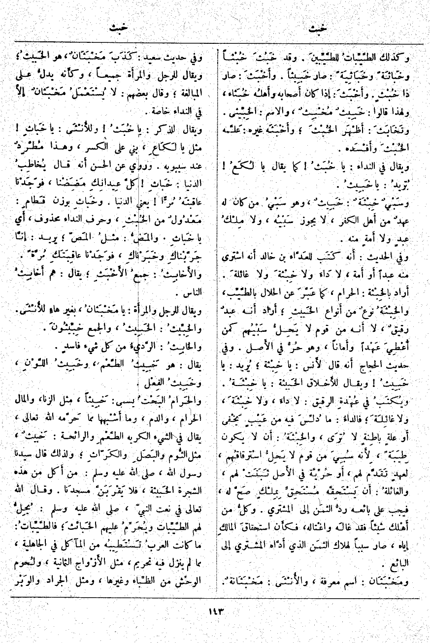 ؛ يُريد: يَا خَبِيثُ ويقال الأَخلاق الخَبيثة: يَا خِبْثَةُ. ويُكتَبُ فِي عُهْدةِ الرَّقِيقِ: لَا داءَ، وَلَا خِبْثَةَ، وَلَا غائِلَةَ؛ فالداءُ: مَا دُلِّسَ فِيهِ مِنْ عَيْبٍ يَخْفى أَو علةٍ باطِنةٍ لَا تُرَى، والخِبْثَةُ: أَن لَا يَكُونَ طِيَبَةً، لِأَنه سُبِيَ مِنْ قَوْمٍ لَا يَحِلُّ اسْترقاقُهم، لعهدٍ تَقَدَّم لَهُمْ، أَو حُرِّيَّة فِي الأَصل ثَبَتَتْ لَهُمْ، والغائلةُ: أَن يَسْتَحِقَّه مُسْتَحِقٌّ بِمِلْكٍ صَحَّ لَهُ، فَيَجِبُ عَلَى بَائِعِهِ ردُّ الثمَن إِلى الْمُشْتَرِي. وكلُّ مَنْ أَهْلك شَيْئًا فَقَدْ غالَه وَاغْتَالَهُ، فكأَن استحقاقَ المالكِ إِياه، صَارَ سَبَبًا لِهَلَاكِ الثمَن الَّذِي أَدَّاه الْمُشْتَرِي إِلى الْبَائِعِ. ومَخْبَثَان: اسْمُ مَعْرِفَةٍ، والأُنْثَى: مَخْبَثَانةٌ. وَفِي حَدِيثِ