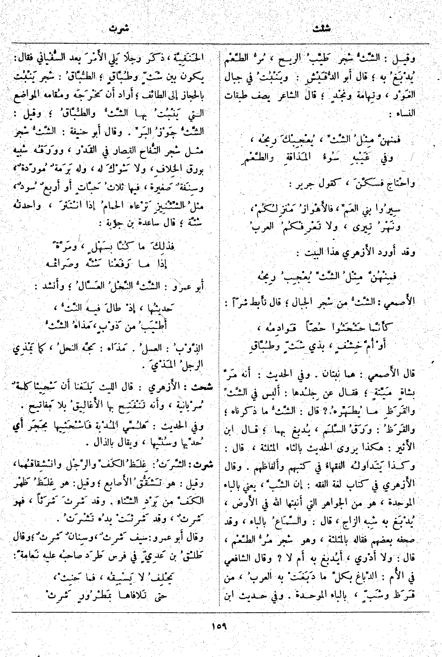 وَقِيلَ: الشَّثُّ شَجَّرٌ طَيِّبُ الرِّيحِ، مُرُّ الطَّعْم يُدْبَغُ بِهِ؛ قَالَ أَبو الدُّقَيْشِ: ويَنْبُتُ فِي جِبَالِ الغَوْر، وتِهامة ونجْدٍ؛ قَالَ الشَّاعِرُ يَصِفُ طَبَقَاتِ النِّسَاءِ: