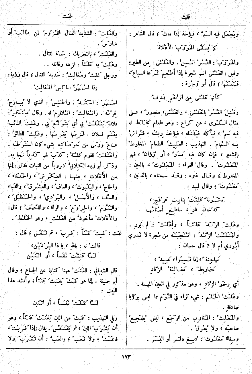 وقُتِلَ النَّسْرُ بالغَلْثى، والغَلْثى، مقصورٌ، عَلَى مِثَالِ السَّلْوى، عَنْ كُرَاعٍ: وَهُوَ طَعَامٌ يُخْلَط لَهُ فِيهِ سَمٌّ، فيأْكله فيَقْتُله، فيؤْخذ رِيشُه، فتُراشُ بِهِ السِّهامُ. التَّهْذِيبُ: الغَلِيثُ الطعامُ المخلوطُ بِالشَّعِيرِ، فإِن كَانَ فِيهِ مَدَرٌ، أَو زُؤَانٌ، فَهُوَ المَغْلُوثُ. وَقَالَ الْفَرَّاءُ: المَعْلُوثُ، بِالْعَيْنِ: الْمَخْلُوطُ؛ وَقَالَ غَيْرُهُ: وَقَدْ سَمِعْنَاهُ، بَالْغَيْنِ، مَغْلُوثٌ؛ وَقَالَ لَبِيدٌ: