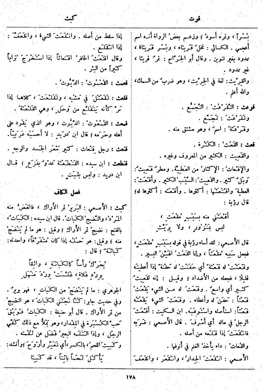 قعث: القَعْثُ: الكَثْرة. والقَعِيث: الْكَثِيرُ مِنَ الْمَعْرُوفِ وَغَيْرِهِ. والإِقْعاثُ: الإِكثارُ مِنَ العَطِيَّة. ومطرٌ قَعِيثٌ: وَبْلٌ كَثِيرٌ. والقَعِيثُ: السَّيْبُ الْكَثِيرُ. وأَقْعَثَ: العطيةَ واقْتَعَثَها: أَكثرها. وأَقْعَثه: أَكثرها لَهُ؛ قَالَ رُؤْبَةُ: