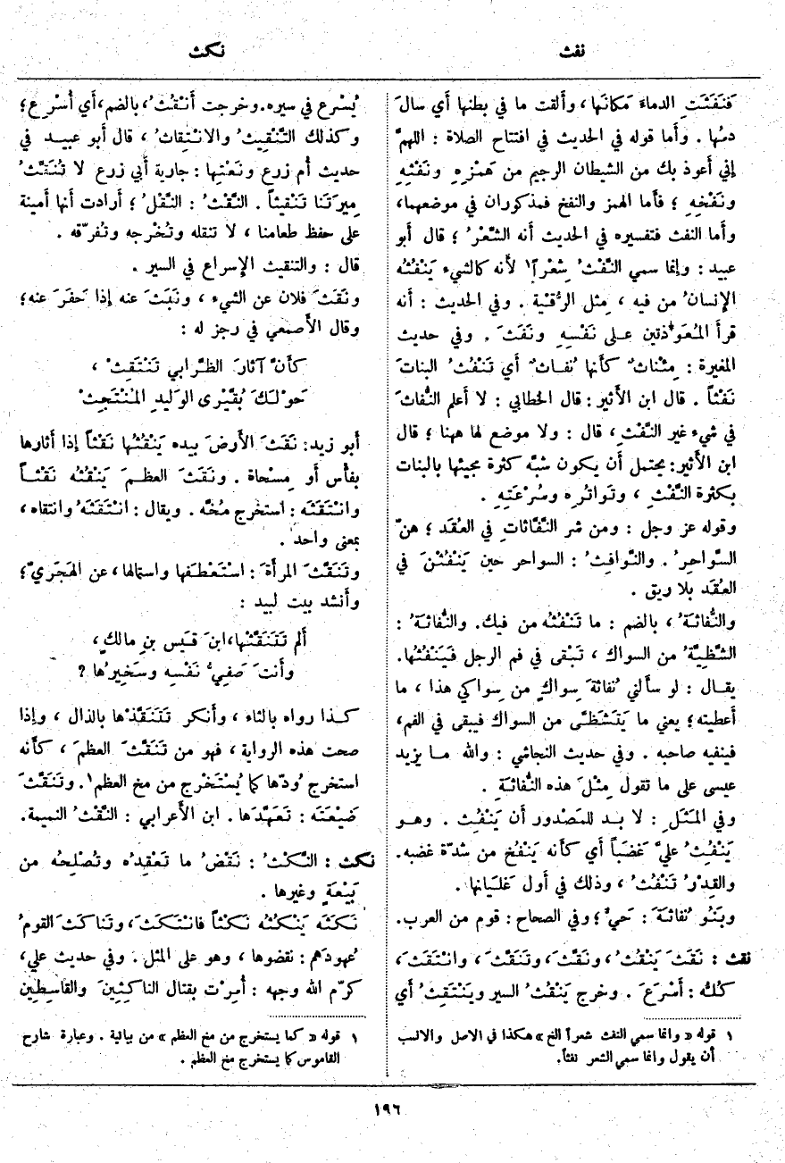 كَذَا رَوَاهُ بِالثَّاءِ، وأَنكر تَتَنَقَّذْها بِالذَّالِ، وإِذا صَحَّتْ هَذِهِ الرِّوَايَةُ، فَهُوَ مِنْ تَنَقَّثَ العظمَ، كأَنه اسْتَخْرَجَ وُدّها كَمَا يُسْتَخْرج مِنْ مُخِّ الْعَظْمِ «4». وتَنَقَّثَ ضَيْعَتَه: تَعَهَّدَها. ابْنُ الأَعرابي: النَّقْثُ النميمة.