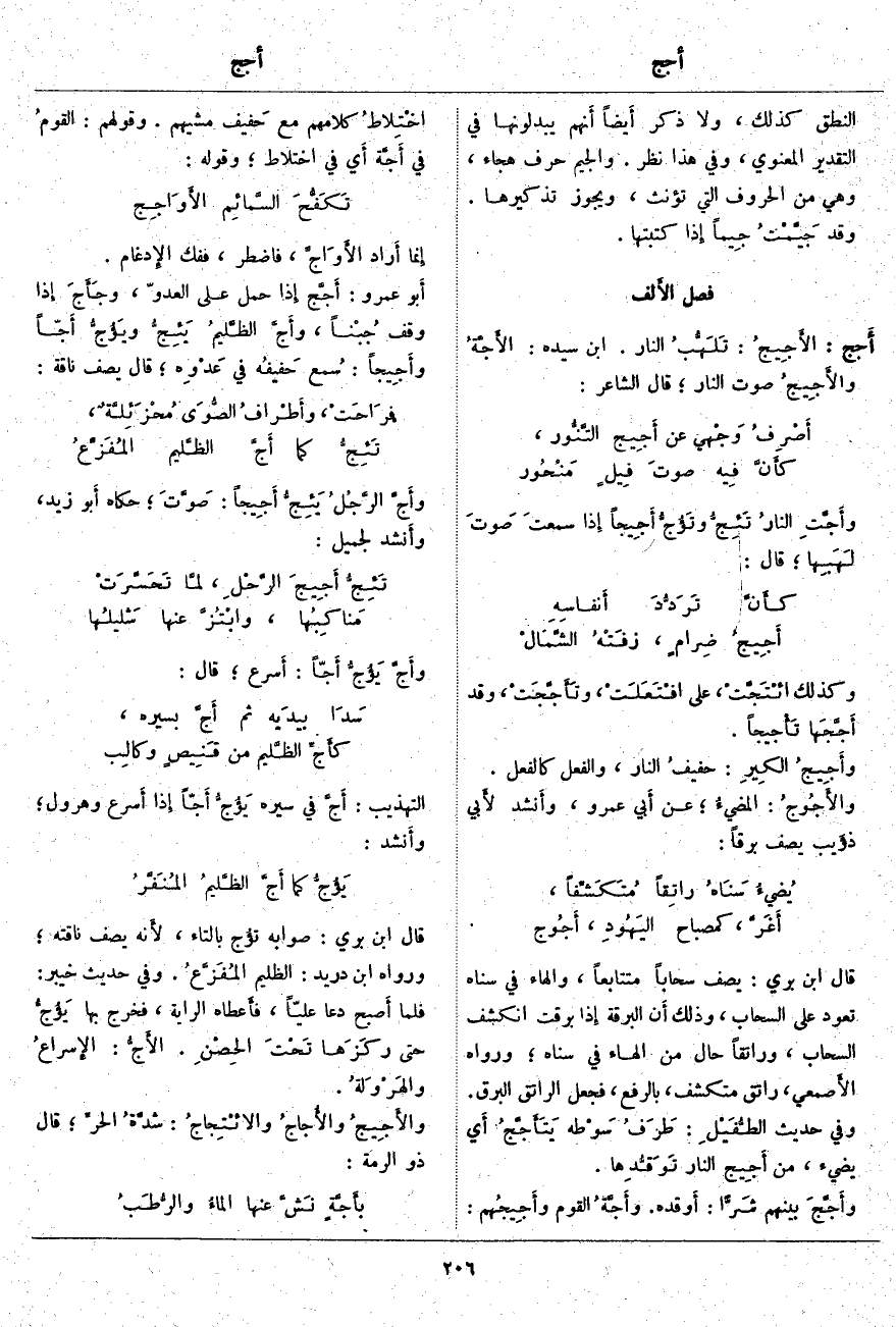 أجج: الأَجِيجُ: تَلَهُّبُ النَّارِ. ابْنُ سِيدَهْ: الأَجَّةُ والأَجِيجُ صَوْتُ النَّارِ؛ قَالَ الشَّاعِرُ: