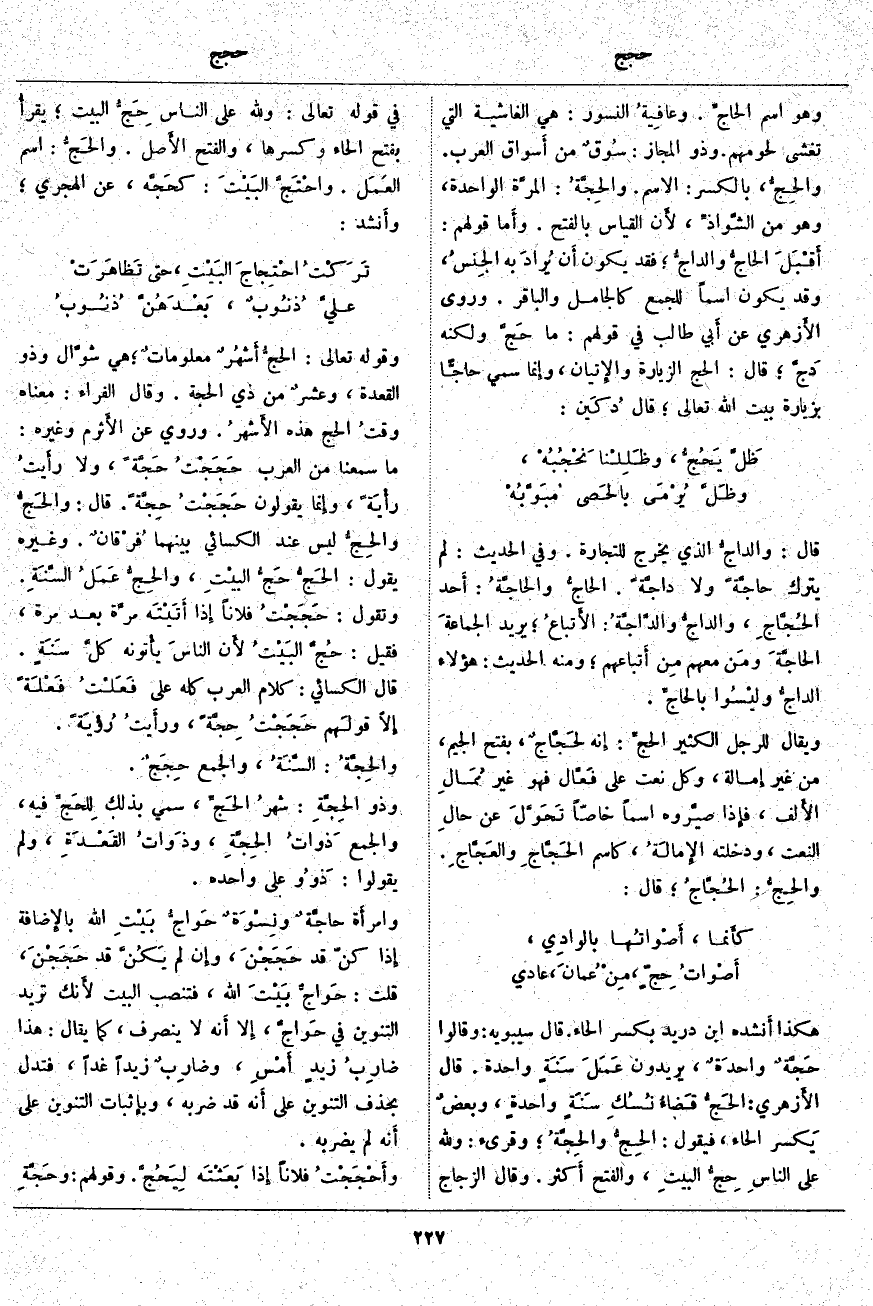 ؛ يقرأُ بِفَتْحِ الْحَاءِ وَكَسْرِهَا، وَالْفَتْحُ الأَصل. والحَجُّ: اسْمُ العَمَل. واحْتَجَّ البَيْتَ: كحَجَّه عَنِ الْهَجَرِيِّ؛ وأَنشد: