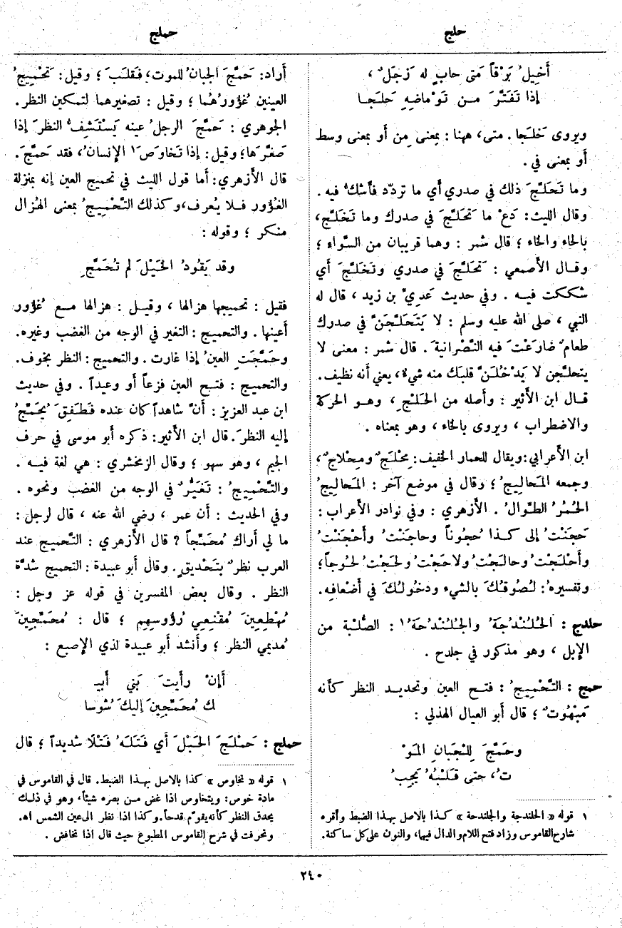 حلدج: الحُلُنْدُجَةُ والجُلُنْدُحَةُ «2»: الصُّلْبة مِنَ الإِبل، وَهُوَ مَذْكُورٌ في جلدح.