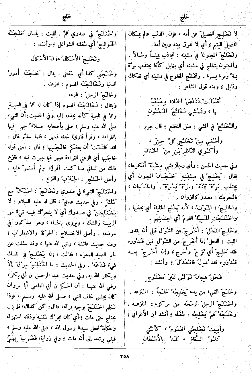 ؛ قَالَ: مَعْنَى قَوْلِهِ خَالَجَنِيهَا أَي نَازَعَنِي الْقِرَاءَةَ فَجَهَرَ فِيمَا جَهَرْتُ فِيهِ، فَنَزَعَ ذَلِكَ مِنْ لِسَانِي مَا كُنْتُ أَقرؤُه وَلَمْ أَستمرّ عَلَيْهِ. وأَصل الخَلْجِ: الجَذْبُ وَالنَّزْعُ. واخْتَلَجَ الشيءُ فِي صَدْرِي وتَخَالَجَ: احْتَكَأَ مَعَ شَكٍّ. وَفِي حَدِيثِ