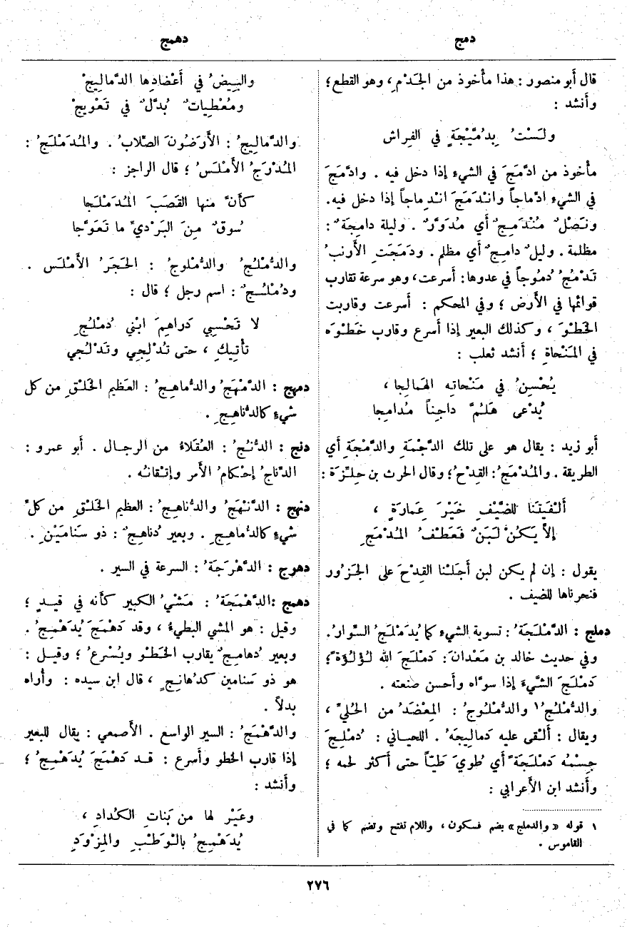 دمهج: الدَّمْهَجُ والدُّماهِجُ: العَظيم الخَلْقِ مِنْ كُلِّ شيءٍ كالدُّناهِجِ.