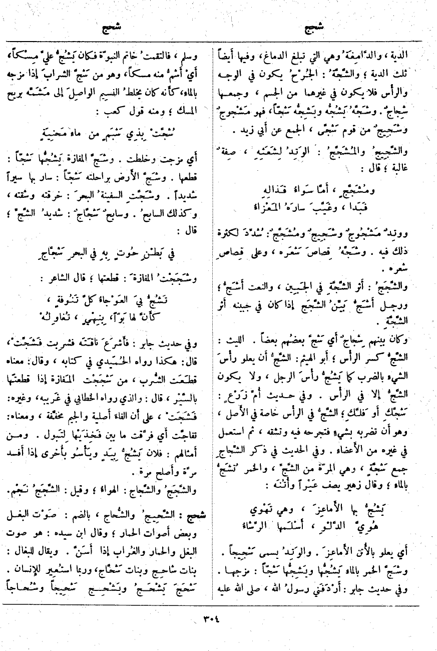 ، قَالَ: هَكَذَا رَوَاهُ الحُمَيدي فِي كِتَابِهِ، وَقَالَ: مَعْنَاهُ قطَعَت الشُّرب، مِنْ شَجَجْت المَفازة إِذا قطعتَها بالسَّيْر، قَالَ: وَالَّذِي رَوَاهُ الْخَطَّابِيُّ فِي غَريبه، وَغَيْرِهِ: فَشَجَتْ، عَلَى أَن الفاءَ أَصلية وَالْجِيمَ مخفَّفة، وَمَعْنَاهُ: تفاجَّت أَي فرَّقت مَا بَيْنَ فَخِذَيْها لِتَبول. وَمِنْ أَمثالهم: فُلَانٌ يَشُجُّ بِيَدٍ ويَأْسُو بأُخرى إِذا أَفسد مرَّة وأَصلح مَرَّةً. والشَّجَجُ والشَّجاج: الهواءُ؛ وقيل: الشَّجَجُ نَجْم.