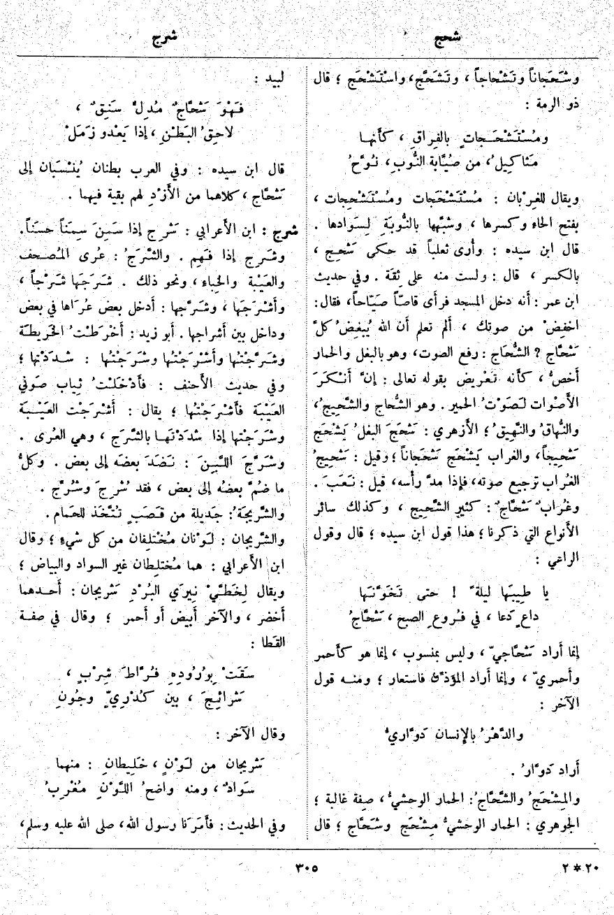 شرج: ابْنُ الأَعرابي: شَرِج إِذا سَمِنَ سِمَناً حسَناً. وشَرِج إِذا فَهِم. والشَّرَجُ: عُرى المُصحف والعَيْبة والخِباءِ، وَنَحْوَ ذَلِكَ. شَرَجَها شَرْجاً، وأَشْرَجَها، وشَرَّجها: أَدخل بَعْضَ عُرَاها فِي بَعْضٍ وَدَاخِلٌ بَيْنَ أَشراجها. أَبو زَيْدٍ: أَخْرَطْتُ الخَريطَة وشَرَّجْتُها وأَشْرَجْتُها وشَرَجْتُها: شدَدْتها؛ وَفِي حَدِيثِ