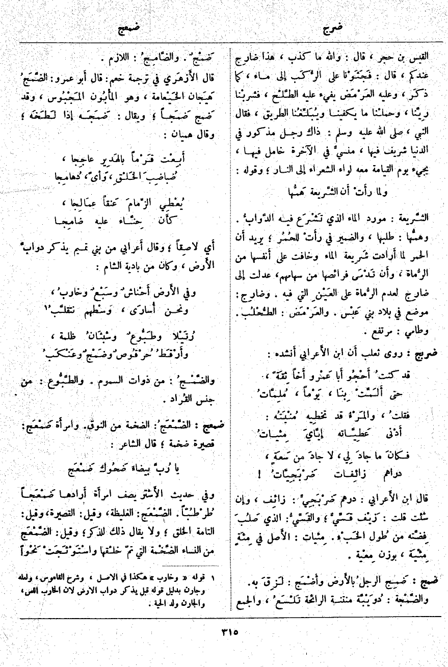 ضربج: رَوَى ثَعْلَبٌ أَن ابْنَ الأَعرابي أَنشده: