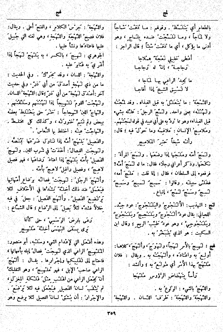 ؛ قَالَ: اللَّهْجةُ اللِّسَانُ. ولَهَّجْتُ القومَ تَلْهِيجاً إِذا لَهَّنْتَهم وسَلَّفْتَهم. والْهاجَّ اللبنُ الْهِيجاجاً: خَثَرَ حَتَّى يَخْتَلِطَ بعضُه بِبَعْضٍ وَلَمْ تَتِمَّ خُثورَتُه. وَكَذَلِكَ كَلُّ مُخْتَلِطٍ. والْهاجَّتْ عينُه: اخْتَلَطَ بِهَا النُّعاسُ. والفَصِيلُ يَلْهَجُ أُمَّه إِذا تَناوَل ضَرْعها يَمْتَصُّه. ولَهِجَتِ الفِصالُ: أَخَذَتْ فِي شُرب اللَّبَنِ. ولَهِجَ الفَصيلُ بأُمّه يَلْهَجُ إِذا اعتادَ رَضاعَها، فَهُوَ فَصِيلٌ لاهِجٌ، وَفَصِيلٌ راغِلٌ لاهِجٌ بأُمّه. وأَلْهَجَ الرجُلُ: لَهِجَتْ فِصالُه برَضاعِ أُمّهاتِها فيَعْمَلُ عِنْدَ ذَلِكَ أَخِلَّةً يَشُدُّها فِي الأَخْلافِ لِئَلَّا يَرْتَضِعَ الفَصيلُ. وأَلْهَج الفَصيلَ: جعلَ فِي فِيهِ خِلالًا فشدَّه لئلَّا يَصِلَ إِلى الرَّضاع؛ قَالَ الشمَّاخ: