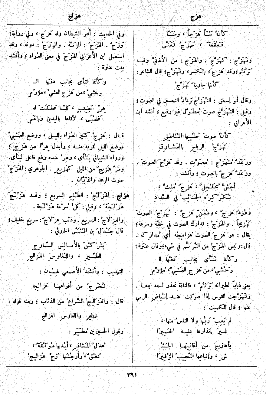 هزلج: الهَزَلَّجُ: الظَّلِيم السَّرِيعُ؛ وَقَدْ هَزْلَجَ هَزْلَجَةً، وَقِيلَ: كلُّ سُرْعة هَزْلَجة. والهِزْلاجُ: السَّرِيعُ. وَذِئْبٌ هِزْلاجٌ: سَرِيعٌ خَفِيفٌ؛ قَالَ جَنْدَلُ بْنُ المُثَنَّى الْحَارِثِيُّ: