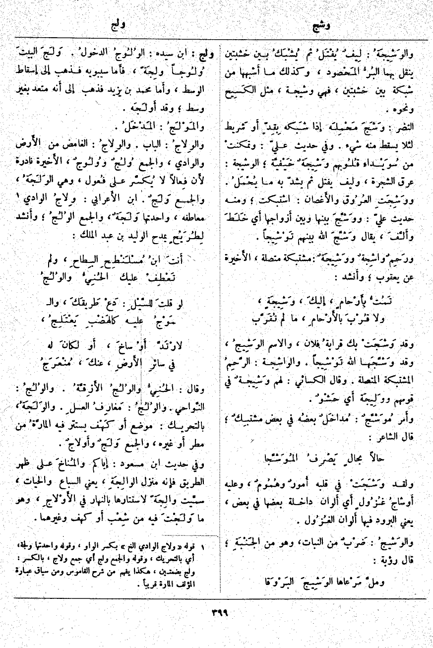 (1). قوله [ولاج الوادي إلخ] بكسر الواو، وقوله واحدتها ولجة، أي بالتحريك، وقوله والجمع ولج أي جمع ولاج، بالكسر: ولج بضمتين، هكذا يفهم من شرح القاموس ومن سياق عبارة المؤلف المارة قريباً.