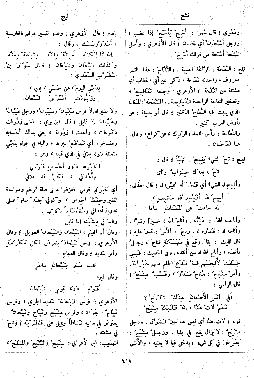 قَوْلُهُ: لَاتَ هنَّا أَي لَيْسَ هُنَا حينُ تَشَوُّق. وَرَجُلٌ مِتْيَحٌ: لَا يَزَالُ يَقَعُ فِي بَلِيَّةٍ. ورجلٌ مِتْيَحٌ: يَعْرِضُ فِي كُلِّ شيءٍ وَيَدْخُلُ فِيمَا لَا يَعْنِيهِ، والأُنثى بِالْهَاءِ؛ قَالَ الأَزهري: وَهُوَ تَفْسِيرُ قَوْلِهِمْ بِالْفَارِسِيَّةِ [أَنْدَرُونَسْت] وَقَالَ:
