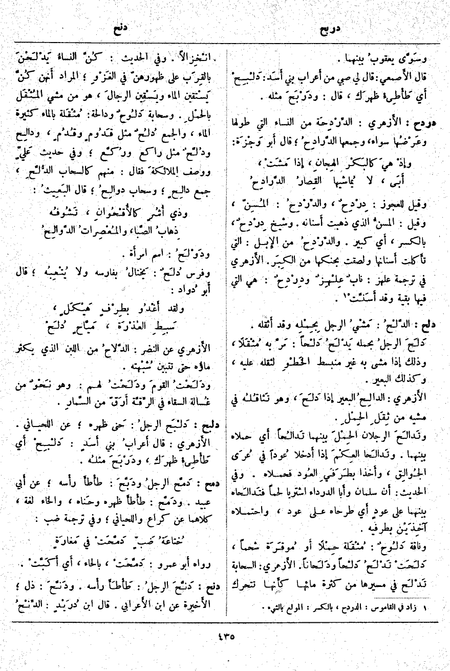 ؛ الْمُرَادُ أَنهن كُنَّ يَسْتقين الْمَاءَ ويَسْقين الرجالَ، هُوَ مِنْ مَشْيِ المُثْقَل بالحمْلِ. وَسَحَابَةٌ دَلُوحٌ وَدَالِحَةٌ: مُثْقَلة بِالْمَاءِ كَثِيرَةُ الْمَاءِ، وَالْجَمْعُ دُلُحٌ مِثْلُ قَدُومٍ وقُدُمٍ، ودالِح ودُلَّحٌ مِثْلُ رَاكِعٍ ورُكَّع؛ وَفِي حَدِيثِ