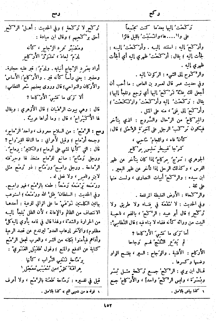 أَي تَرْجِعُ وتلجأُ إِليها؛ يقال: رَكَحْتُ إِليه وأَرْكَحْتُ وارْتَكَحْتُ؛ وأَرْكَحَ إِلى غِنًى، مِنْهُ عَلَى الْمَثَلِ. والمِرْكاحُ مِنَ الرِّحال والسُّروج: الَّذِي يتأَخر فَيَكُونُ مَرْكَبُ الرجلِ عَلَى آخِرَةِ الرَّحْل؛ قَالَ: